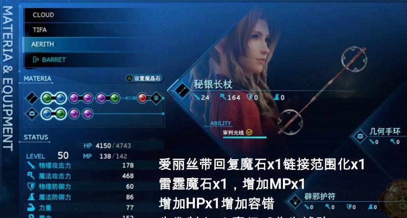1.克劳德带时间魔石HP*1,增加HP*2增加容错,增加MP*1,先发制人*1,招式高手*1,强化防御*1作为辅助,火焰魔石*1,链接属性魔石*1吸收火焰伤害,多余孔位可以自由搭配。