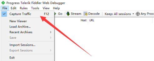 首先进入Fiddler软件,点击顶部的File菜单