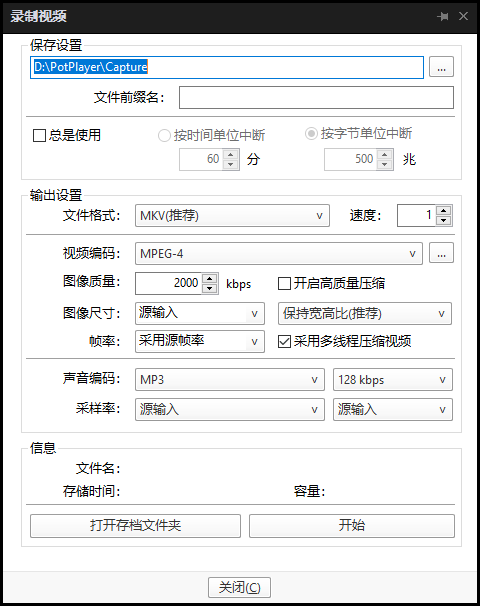 在使用PotPlayer播放视频时,在软件界面鼠标右键选择“视频”-“视频录制”-“录制视频”,也可以快捷键“Alt+C”,便能进行视频录制。