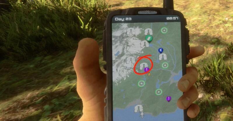 1、打开地图,前往图中画圈的洞穴拿到潜水器。