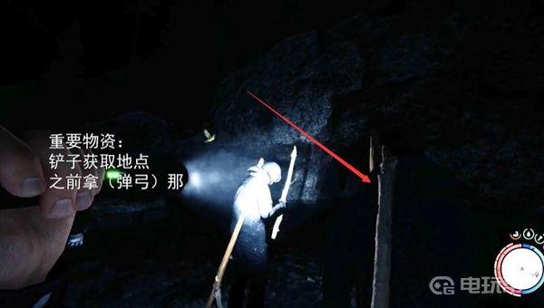 前往雪山下方的洞穴,挂过去,潜水下去,在最深处的尸体前方就是铲子。