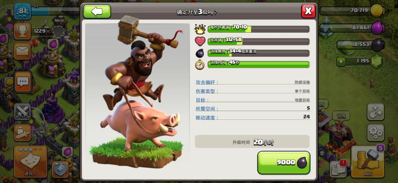 野猪骑士作为无视城墙的地面兵种,是低本阶段最好的冲杯选择。八本阶段200人口,可搭配30野猪、8法师、12野蛮人、30弓箭手,城堡兵优先选女巫。九本220人口可增加到32野猪、10法师,剩余人口补野蛮人扛伤。到了十二本39野猪搭配5天使、3气球、6炸弹兵和弓箭女皇组合,借助天使续航与女皇清边能力突破复杂阵型。