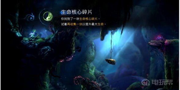 5、具体在地图这个位置,下面有一个“生命核心碎片”,到这里奥日应该有5个血球了。