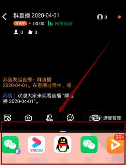 点击”群直播“左上方的箭头,就开启小窗口模式。