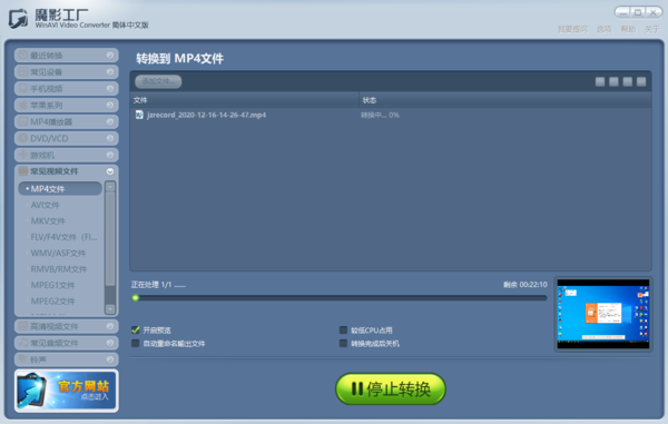 而如果电脑上可以正常播放视频文件,但是还会无法添加到魔影工厂软件当中的话,那么很有可能是因为软件不支持这种格式,所以导致了魔影工厂添加文件失败问题的出现,那么此时我们只能换一个视频转换软件来对视频的格式进行转换了。