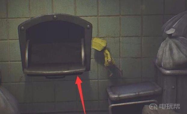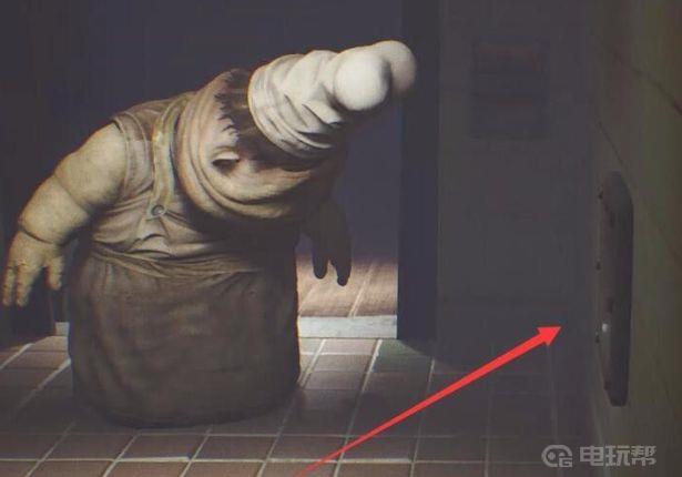 七、大胖子会跟着你上来,不过右边有个可以躲避的小管道,钻进去,如图所示;