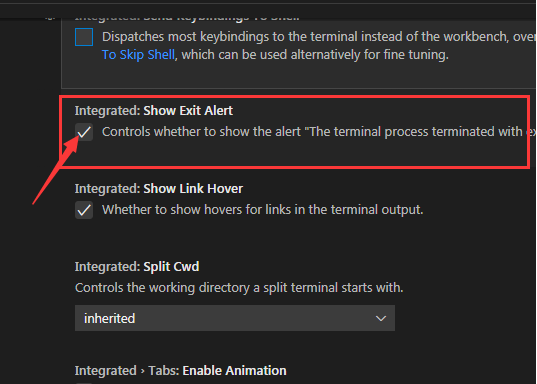 3.最后在右侧的栏目板块中,找到show exit alert选项,鼠标点击取消勾选即可。