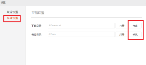 再切换到“存储设置”选项卡,建议修改下载目录,自定义备份目录,将默认下载目录移出C盘,记得点击“确定”以保存设置;
