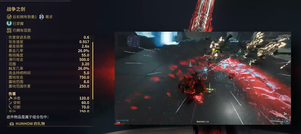 这把武器其实是完整战争之剑的基础形态,很多老玩家称呼它为小破剑,但千万别小看它,因为它是合成完整版的必须材料。在做完主线任务第二场梦系统会赠送你这把武器,同时还自带一个已安装好的奥罗金催化剂与武器槽位。如果你不小心卖掉了或者想再做一把,它的蓝图也有机会从Shadow Stalker那里刷到。这把破碎战争之剑自带物理冲击伤害,初始属性不错,特别适合新手用来开荒过渡。