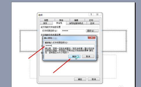 在 打开权限密码 处输入要设置的密码后再点“确定”
