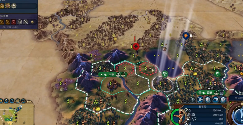 游戏开始后应立即生产侦察兵探索周边,优先寻找城邦和评估邻居位置。首都的坐地位置至关重要,应优先选择资源丰富的区域,例如拥有石头、山坡羊、鹿或象牙的高产地块,确保初始的粮食与生产力。理想开局地包括丘陵或河流旁,以保障早期产能和住房,若出生点附近有沙漠或采石场,则为抢建金字塔提供了良好条件。